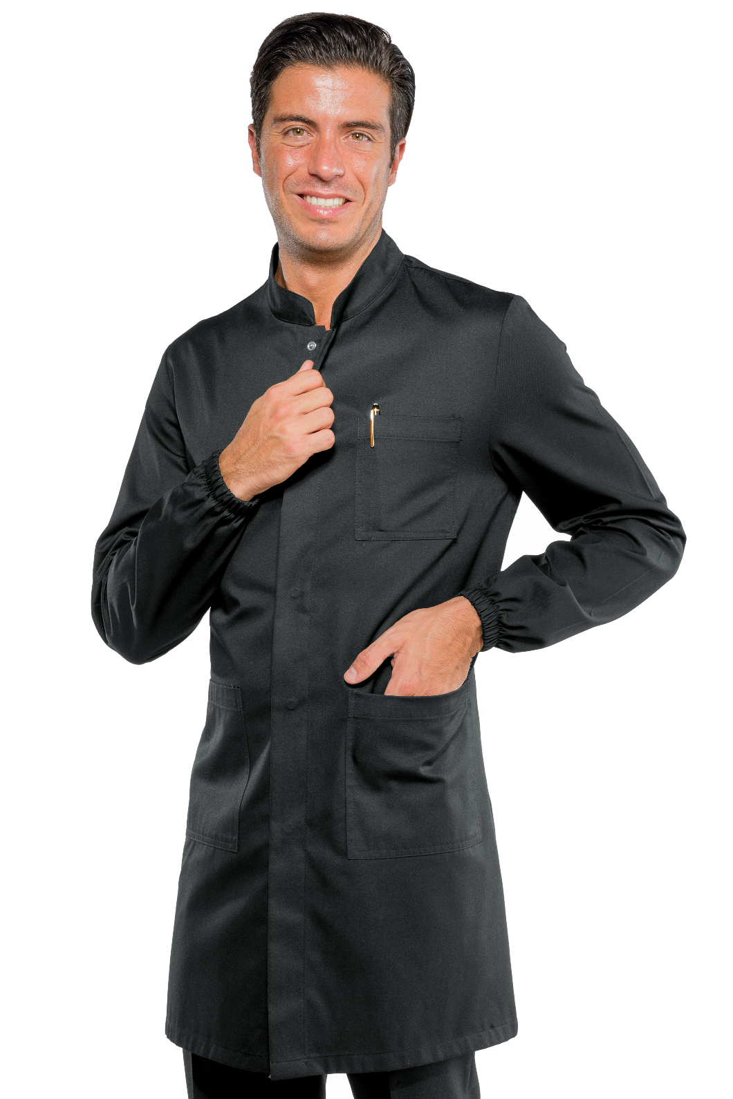 Camice da uomo Dover con collo alla coreana a manica lunga bianco. Settore medicale, estetico, sanitario, ospedaliero e industria. Ottima divisa da lavoro per medico, infermiere, farmacista.