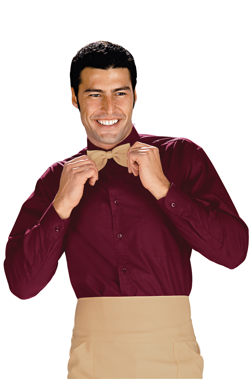 Camicia unisex Classica con collo classico a manica lunga a righe bordeaux. Ottima per settore alberghiero e servizio in sala. Divisa da lavoro per bar, pub, ristoranti, enoteche e catering. Con un taschino al petto. Modello da uomo e da…