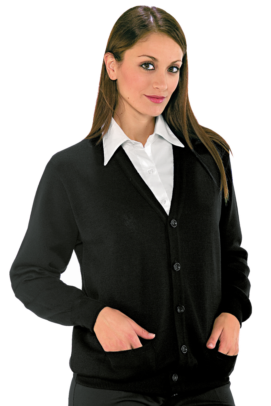 Cardigan Unisex nero. Molto utilizzato anche nel settore medicale, estetico, sanitario, ospedaliero e alimentare. Ideale come divisa da lavoro medico , infermiere, per aziende di servizi, pulizie e cucin e cuoco.