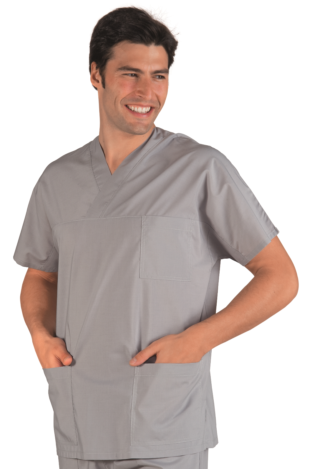 Casacca a collo a V unisex a mezza manica bianco. Per settore medicale, estetico, sanitario e ospedaliero. Ideale come divisa da lavoro per medico ed infermiere uomo e donna. Con 2 tasche e taschino al petto. ABBIGLIAMENTO SANITARIO DIVISE SANITARIE 100 COTONE