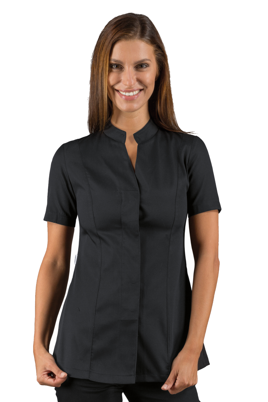 La casacca Hibiscus è una camicia da donna a mezza manica bianco. Per settore estetico e sanitario. Ottima divisa da lavoro per estetiste, massaggiatrici e negozi alimentari. L’indumento è sciancrato con bottoni a pressione.