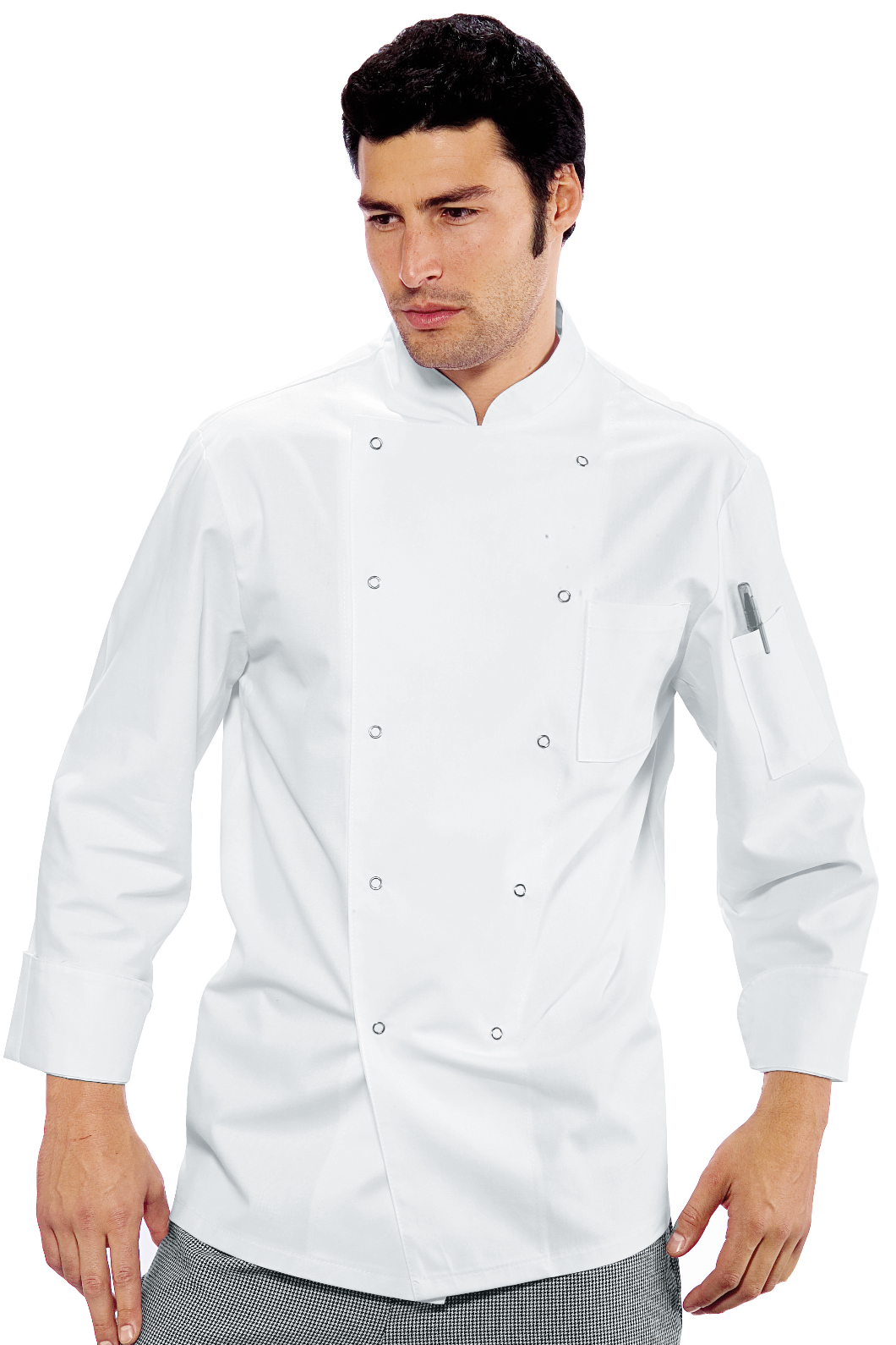 La Giacca da Cuoco Classica Bottoni a Pressione a manica lunga bianco. Ottima divisa per uomo e donna da chef in cucina, ristorante o catering. Taschino alla manica e allacciatura con bottoni antipanico, modello classico.