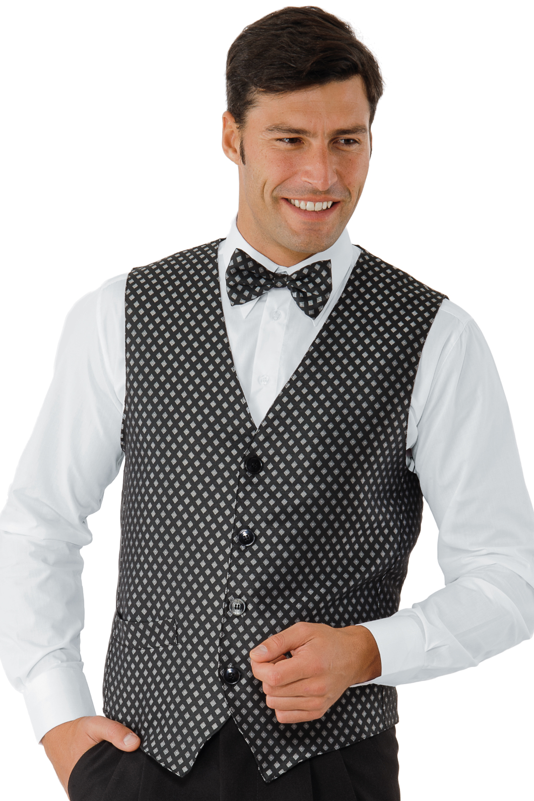 Scopri questo gilet unisex nero. Ideale per settore alberghiero e servizio in sala. ideale come divisa da lavoro per bar, pub, ristoranti, enoteche e catering. Viene abbottonato con un gemello,possibile scegliere fra tinta unità o in oro lavorato. DIVISE RISTORAZIONE