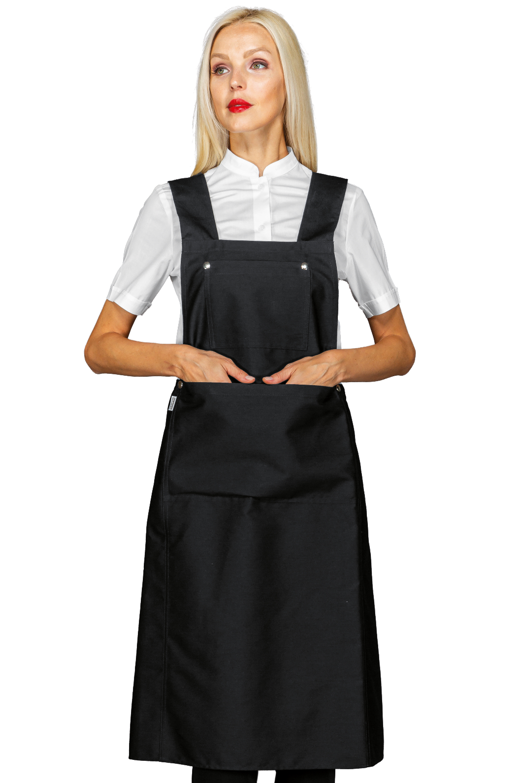 Nagano è un grembiule da donna Nero. Ottima per settore alimentare, igiene, pulizia, estetico, sanitario. come divisa da lavoro per aziende di servizi, bar, pub, ristoranti, fioristi. Taglia unica per vestire tutte le taglie.