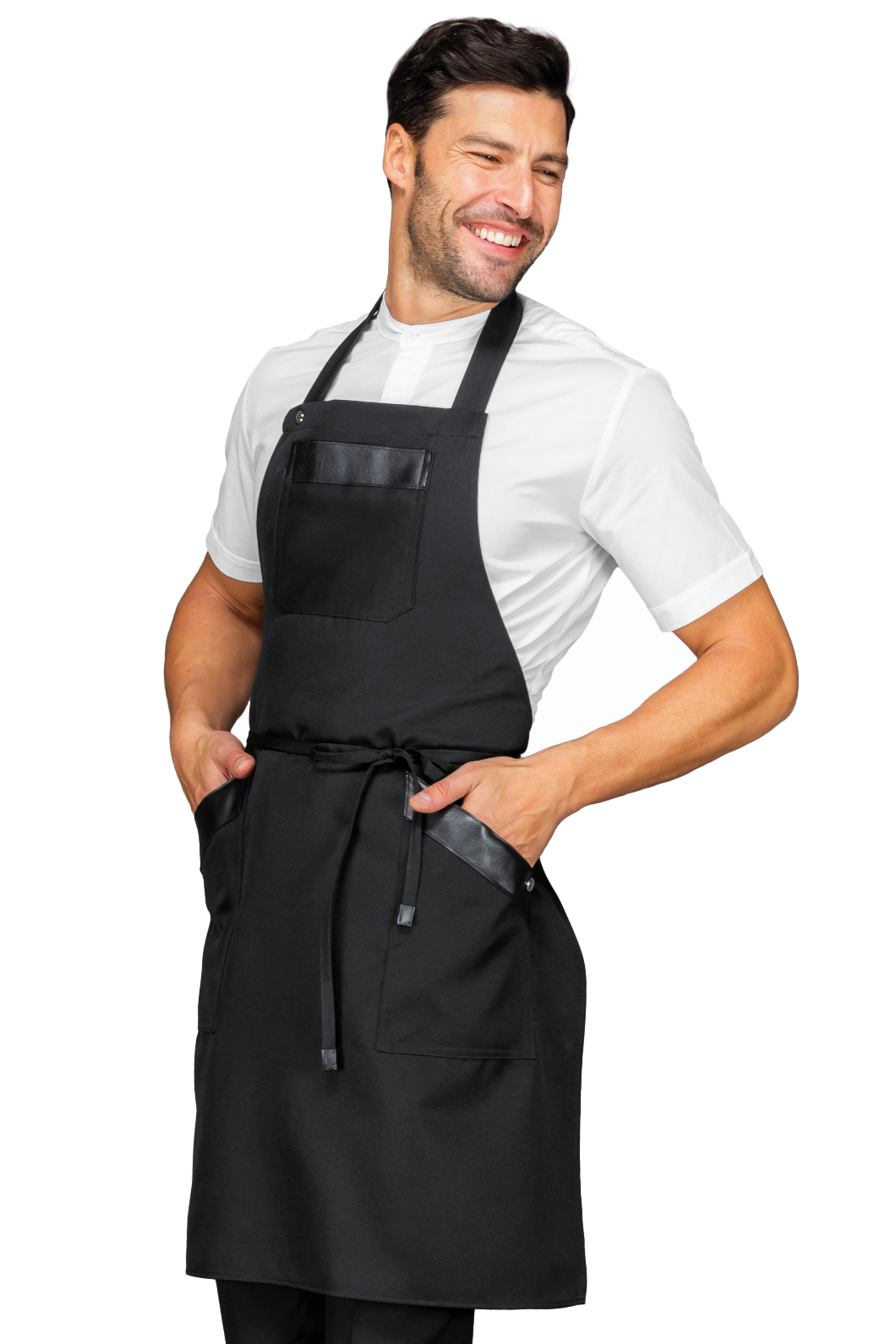 Grembiule Oregon , lungo Unisex nero. Ideale come divisa da lavoro per cantine, bar, enoteche e bistrot. Con allacciatura dietro al collo che ne permette la regolazione della pettorina. Con tasca ampia al petto, 2 ampie tasche in vita e con inserti in pelle. GREMBIULE BARBIERE
