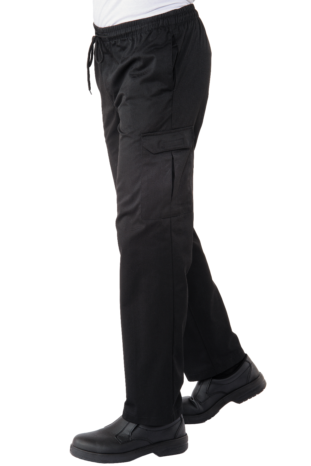 Pantachef è il pantalone unisex nero. Ideale per settore estetico e alimentare. Utilizzata come divisa da lavoro per aziende di servizi, pulizie e cucina e divisa da cuoco e industria. Con laccio in vita e tasconi cargo laterali.