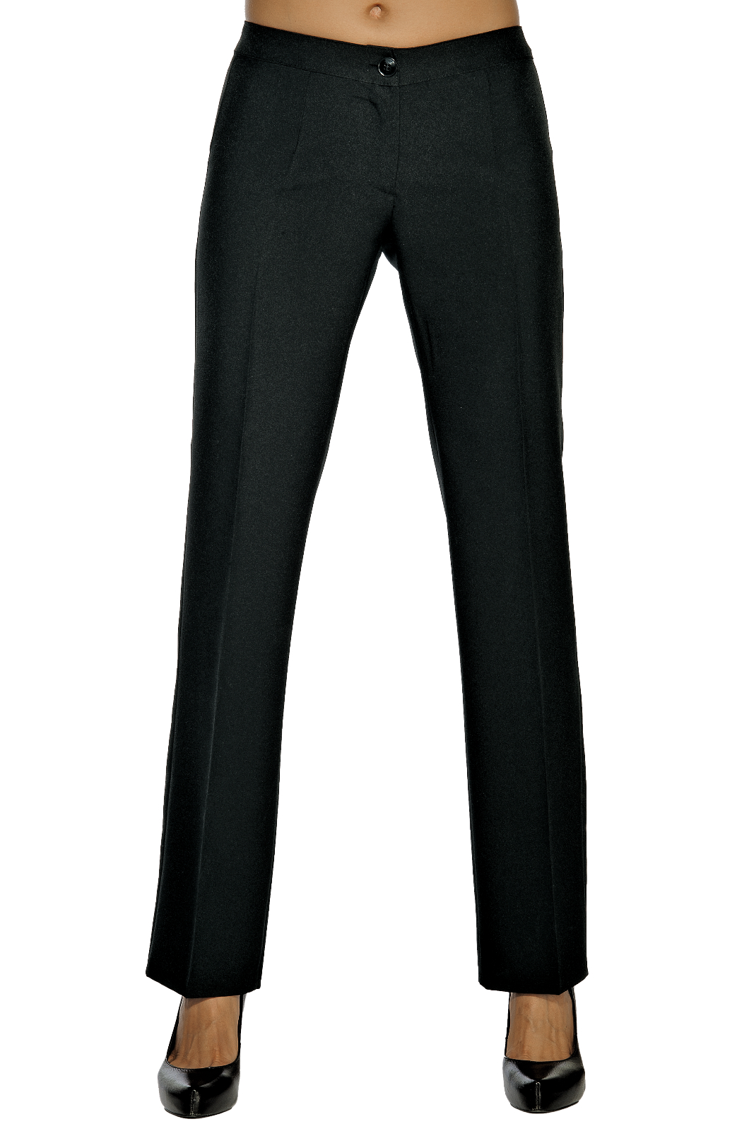 Il pantalone da donna Trendy nero. Per settore alberghiero e servizio in sala. Utilizzata come divisa da lavoro per estetista, per bar, pub, ristoranti, enoteche, catering e per aziende di servizi. Chiusura frontale con zip con bottone, senza tasche. PANTALONI NERI CAMERIERA DIVISE ALBERGHIERO