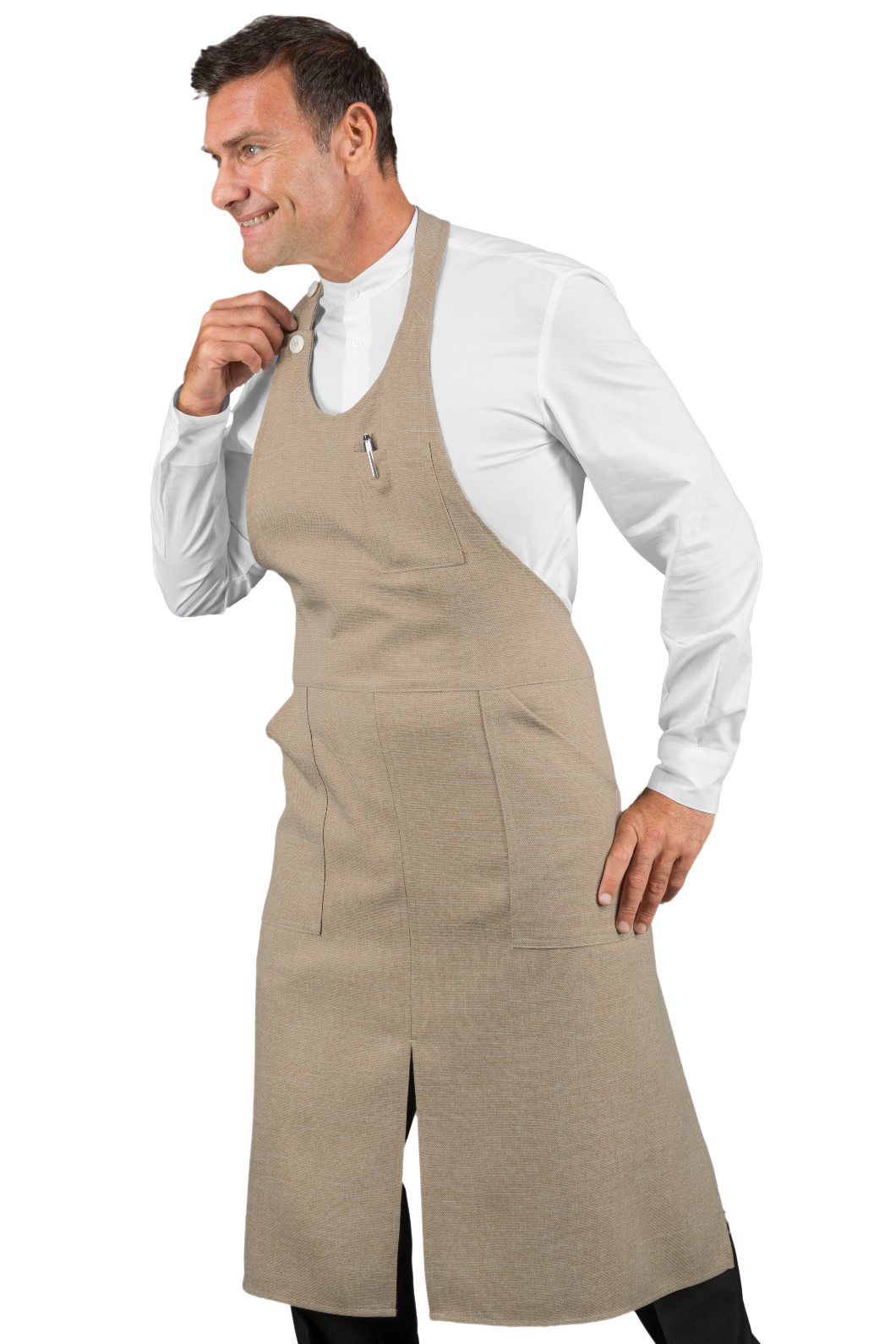Grembiule con spacco Sommelier Unisex nero. Ideale come divisa da lavoro per cantine, bar, enoteche e bistrot. Con allacciatura dietro al collo che ne permette la regolazione della pettorina. Con taschino al petto e 2 ampie tasche in vita.